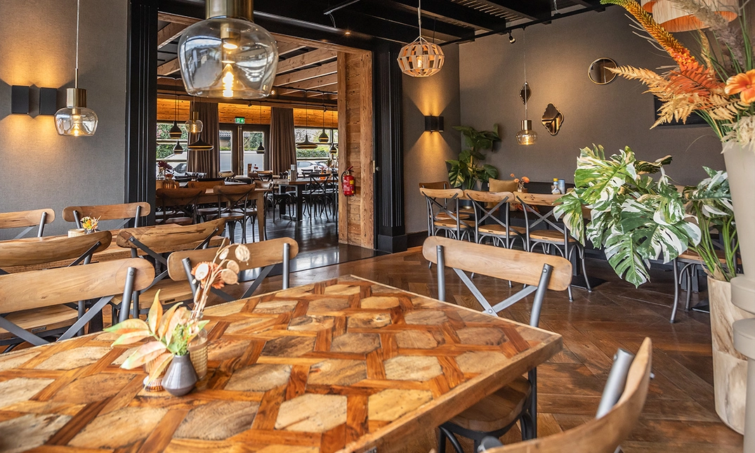 De sfeervolle zaak bevindt zich aan de rand van het bos en de duinen in Noordwijk, op nog geen kilometer afstand van het strand. Neem plaats op het ruime terras, de veranda of schuif gezellig en knus binnen aan bij een van de open haarden. Perfect te combineren met een dagje uitwaaien aan het strand of als feestelijke gelegenheid met het hele gezin!