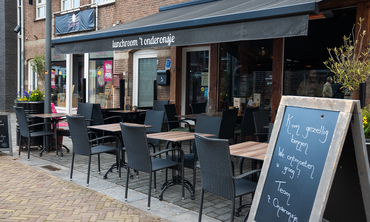 Lunchroom ‘t Onderonsje in het centrum van Schijndel biedt nét dat beetje extra. Dankzij de knusse en gezellige inrichting is dit een perfecte plek om heerlijk ontspannen te lunchen en/of een drankje te drinken. De naam kenmerkt de sfeer van de lunchroom: een ruimte waar jong en oud elkaar ontmoet om gezellig een ‘onderonsje' te hebben. Neem bij mooi weer plaats op het zonnige terras op de binnenplaats of aan de voorkant!