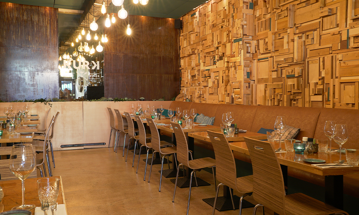Hier genieten gasten van lekker eten, zonder te veel poespas. Dit alles in een zaak met een gezellige en ongedwongen sfeer. Of het nu gaat om een goed glas wijn met een pincho (klein hapje), een mooi stuk vlees met een biertje of een uitgebreid diner bestaande uit meerdere gerechten met mooie wijnen; KURK is dé plek waar je kunt genieten.