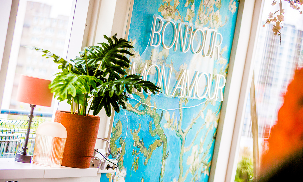 Teds is een gezellige all-day-brunchzaak in hartje Rotterdam, boven op Rotterdams Central District East's Schieblok-gebouw. Grote lampen, leuke quotes op de muur en een combinatie van fijne kleuren; wanneer je binnenloopt voel jij je meteen thuis.