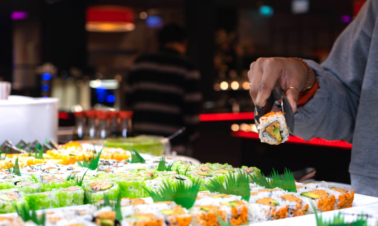 Er zijn verschillende buffetten met voorgerechten, hoofdgerechten, sushi's, fruit en desserts én er wordt live voor je gekookt. Zo kun je smullen van diverse wokgerechten, vis en vlees van de grill en van teppanyaki. Ook is het mogelijk om met familie, vrienden of collega's een Eat & Roll-arrangement te boeken. Je gaat dan na het eten met zijn allen naar de Rollerskate-discotheek in het pand naast het restaurant! Of gaan jullie liever glow-in-the-dark-midgetgolfen?