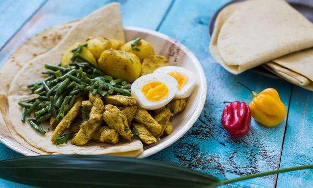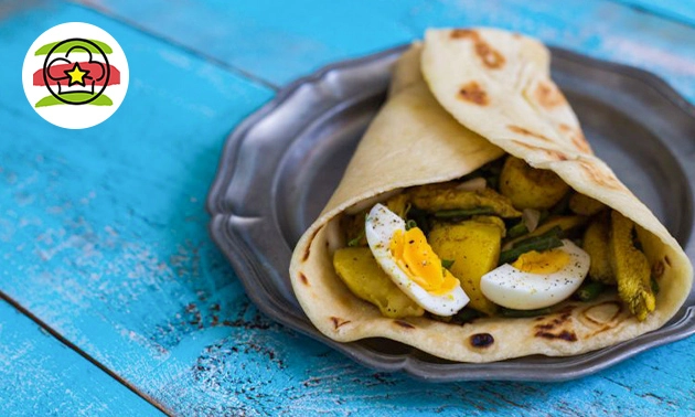 Proef de authentieke smaak van Suriname met een heerlijke rotiwrap om af te halen bij Surinaams koken met Jen. Je vindt dit gezellige afhaalrestaurant aan de Schrans in Leeuwarden. Jouw rotiwrap wordt geserveerd met een snack naar keuze én een blikje fris naar keuze maakt jouw snelle maaltijd helemaal compleet. Perfect voor de lekkere trek!