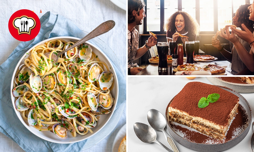 Geniet van een Italiaans 3-gangendiner à la carte bij A Muntagna: proef bijvoorbeeld de parmaham en mozzarella, pasta carbonara en sluit af met romige tiramisu