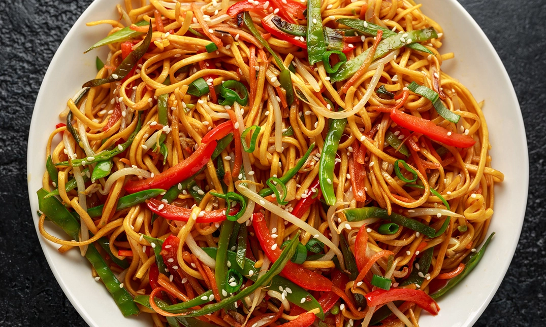 noedels, rundvlees en geroerbakte verse groenten, ook verkrijgbaar met kip of vegetarisch - Korumachop