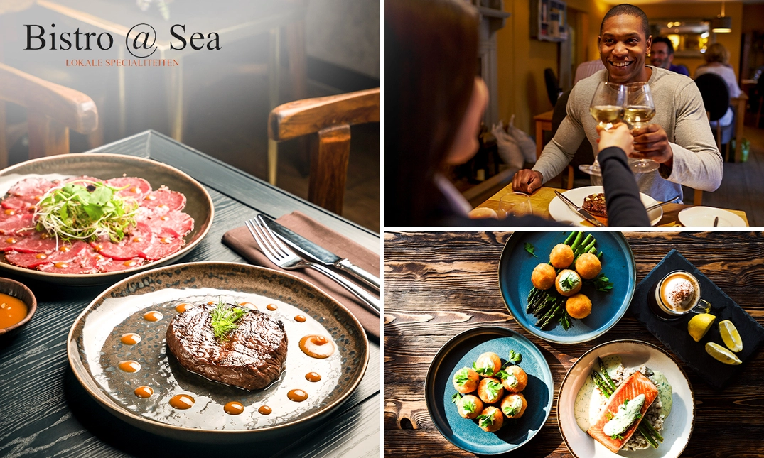 Geniet van een heerlijke 3-gangen keuzelunch of een smakelijk 3-gangen keuzediner bij Bistro @ SEA bij het strand van Middelkerke: smul van een heerlijk voor-, hoofd- en nagerecht