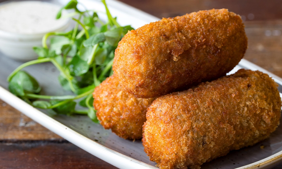 Alle hoofdgerechten worden geserveerd met keuze uit frieten, kroketten, pasta, gebakken aardappelen, lookkrielen, gekookte aardappel of puree.