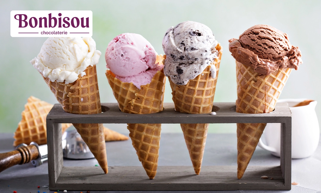 Strippenkaart voor 10 heerlijke bollen ijs bij Bonbisou Chocolaterie & IJs in Deurne, Nuenen en Weert: keuze uit 16 verschillende soorten roomijs en sorbetijs