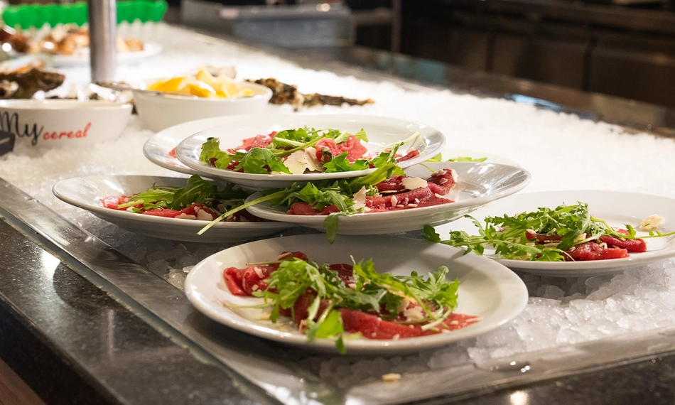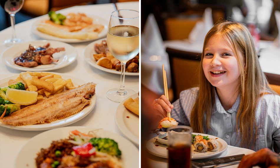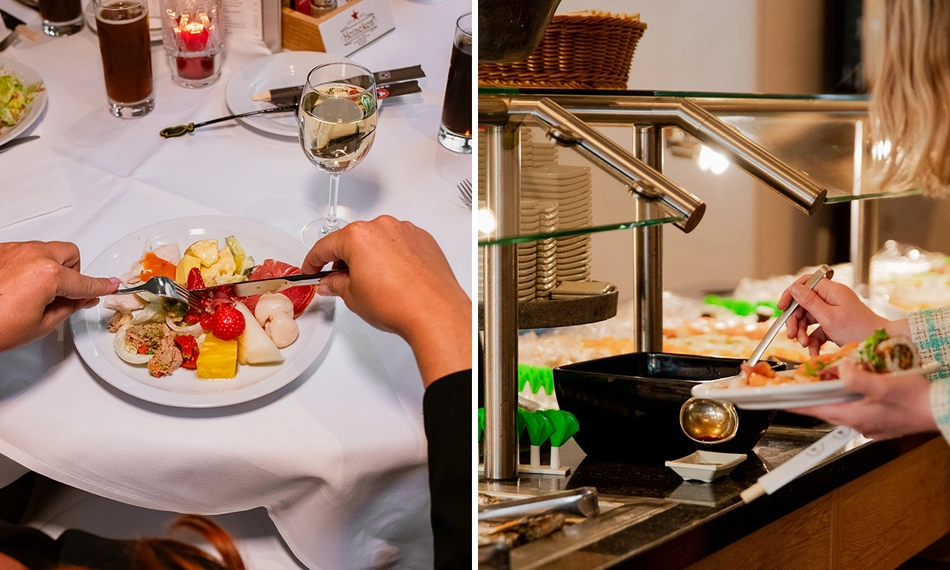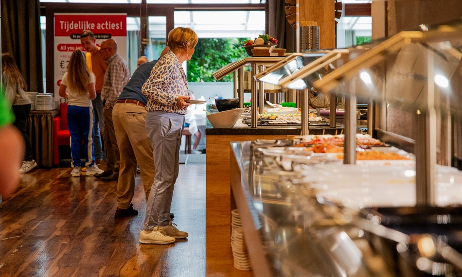 Begin met een verrukkelijk voorgerecht zoals soep, sushi en salade. Proef vervolgens de heerlijke oosterse vis-, vlees- en groentegerechten van het buffet. Of kies voor de gerechten van de live cooking op de teppanyaki-plaat. Als afsluiting kun je smullen van chocolade- en vanillemousse, diverse smaken ijs, slagroom, soesjes, poffertjes, warme kersen en vers gesneden fruit. Dat wordt genieten!