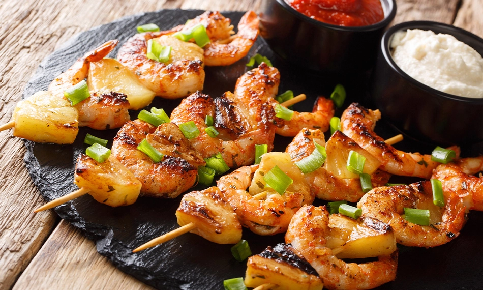 Of ga voor een uitgebreid 3-gangen keuzediner. Geniet onder andere van carpaccio, garnalen pil pil, sticky chicken wings, zalmfilet en meer. Sluit in stijl af met een dessert van de barbecue. Laat je in de watten leggen door het gastvrije personeel en geniet van een overheerlijke avond. Enjoy!