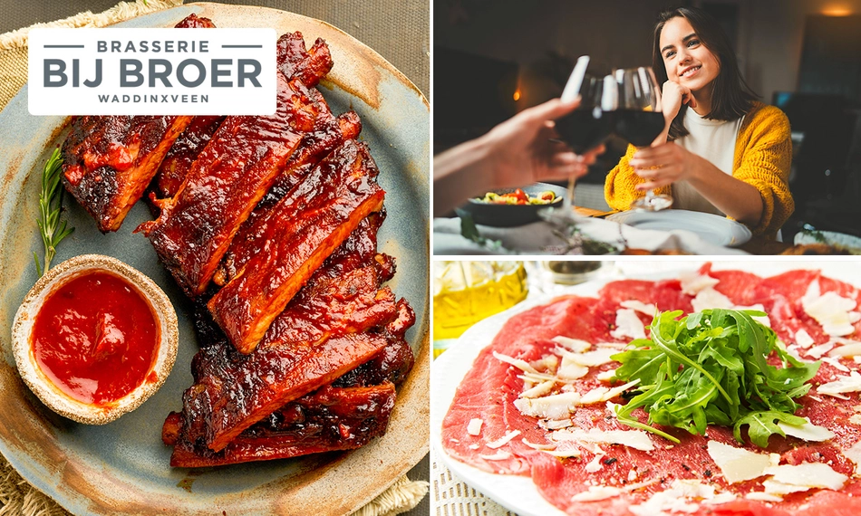 Geniet van een heerlijk 3-gangendiner met vrije keuze van de kaart bij Brasserie bij Broer Waddinxveen. Begin bijvoorbeeld met een soepje, carpaccio of gerookte kip cocktail. Kies bij het hoofdgerecht voor een burger, gerecht van de barbecue of juist voor iets uit de pan. Sluit af met een verrukkelijk nagerecht en je avond is compleet. Smakelijk!