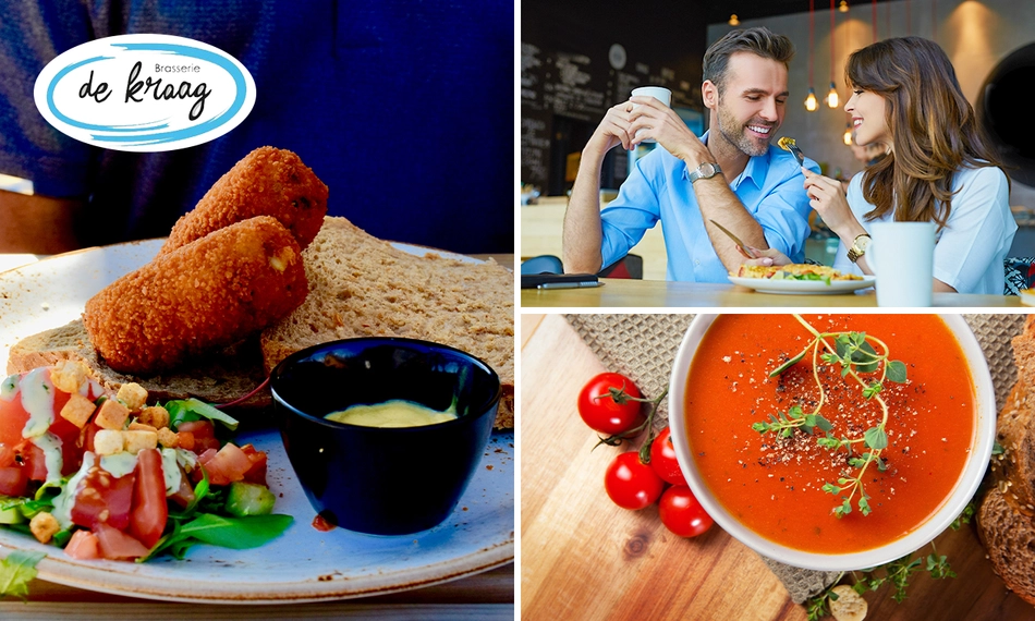 Toe aan een break? Kom dan gezellig langs bij Brasserie de Kraag en geniet van een compleet 12-uurtje met een kroket, uitsmijter, soep en warme drank naar keuze. Je hebt keuze uit vlees en vegetarisch. Of ga voor de winter-special en smul van een heerlijke rookworst. Meer zin in een middagje of avondje borrelen? Ook dan ben je welkom voor een compleet borrelarrangement met een heerlijke bittergarnituur. Daarbij krijg je ook nog een lekker wijntje, een ambachtelijk biertje of een heerlijke cocktail. Kom langs met je favoriete gezelschap!