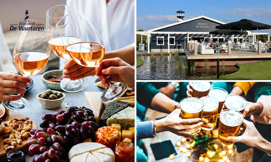 Breng een toost uit op het goede leven bij Brasserie De Vuurtoren en geniet 1,5 uur lang van een ontspannen high wine of high beer. Je kiest zelf wat bij jouw smaak past: 3 glazen bier of 3 glazen wijn (rood, wit of rosé). Liever iets zonder alcohol? Geen probleem! Ga dan bijvoorbeeld voor alcoholvrij bier of frisdrank en geniet op jouw manier. De borrel wordt compleet gemaakt met een royale selectie warme en koude hapjes, perfect om samen te delen. Ideaal voor een gezellige middag of een sfeervol borrelmoment met je favoriete gezelschap. Genieten maar!