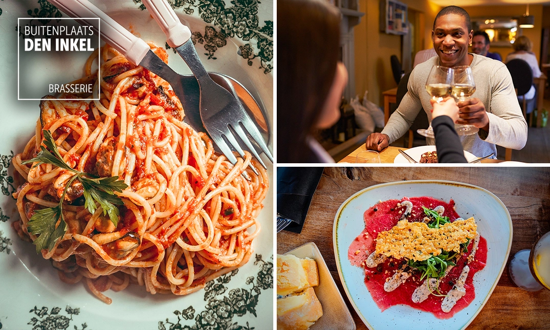 Geniet van een heerlijk 2-gangendiner bij Brasserie Den Inkel in Kruiningen. Proef als voorgerecht bijvoorbeeld een heerlijke soep van de dag of geitenkaassalade. Laat je daarna verrassen door een lekker hoofdgerecht. Bijvoorbeeld de varkensschnitzel, pasta bolognese of een vers bereide pizza. Er is voor ieder wat wils. Alvast smakelijk!