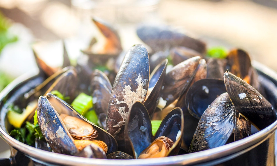Kies je bij het hoofdgerecht voor mosselen? Dan heb je bij het nagerecht keuze uit chocomousse en een dame blanche