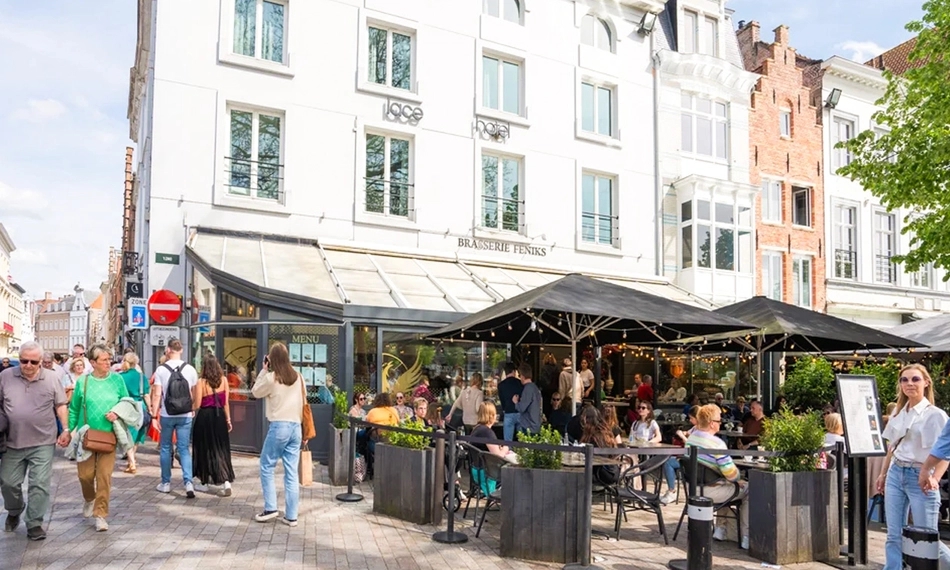 Brasserie Feniks vind je aan 't Zand in het stadshart van Brugge. Het restaurant biedt zicht op het Concertgebouw en is een plek waar je in de middag en avond in alle rust terechtkan voor een hapje en drankje.