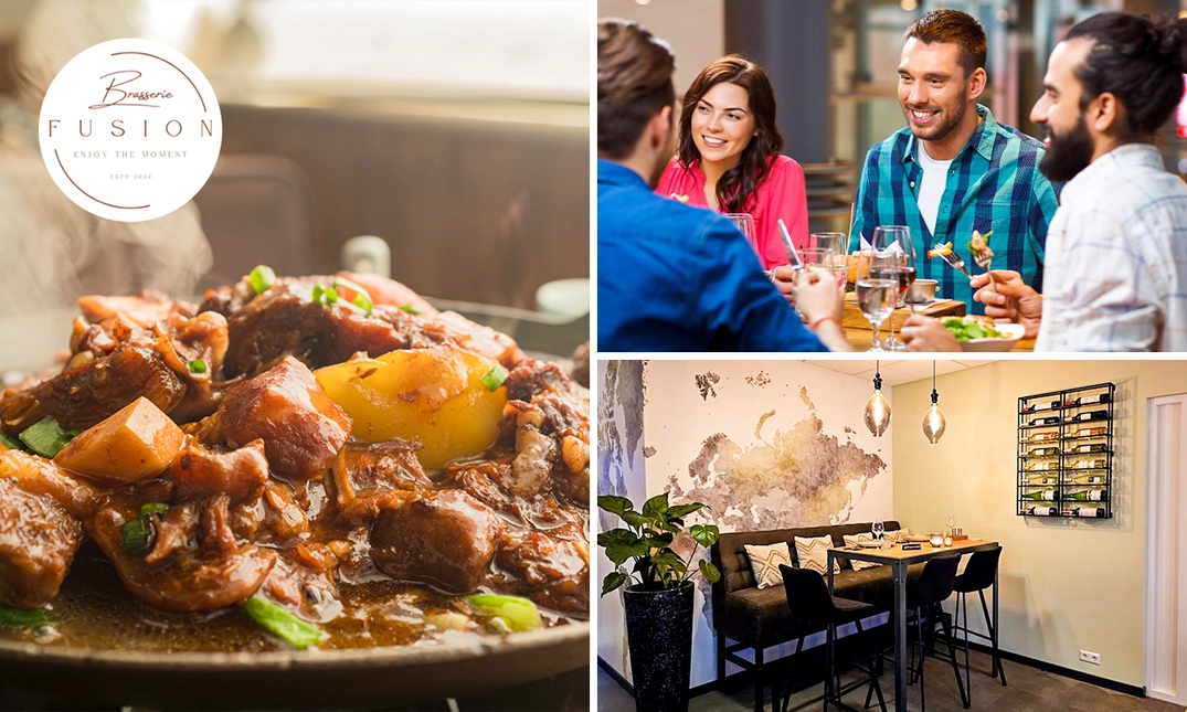 Geniet van een heerlijk 3-gangen keuzediner bij Brasserie Fusion in Epe: proef bijvoorbeeld huisgemaakte tomatensoep, Veluws stoofvlees en sluit af met chocolademousse met slagroom
