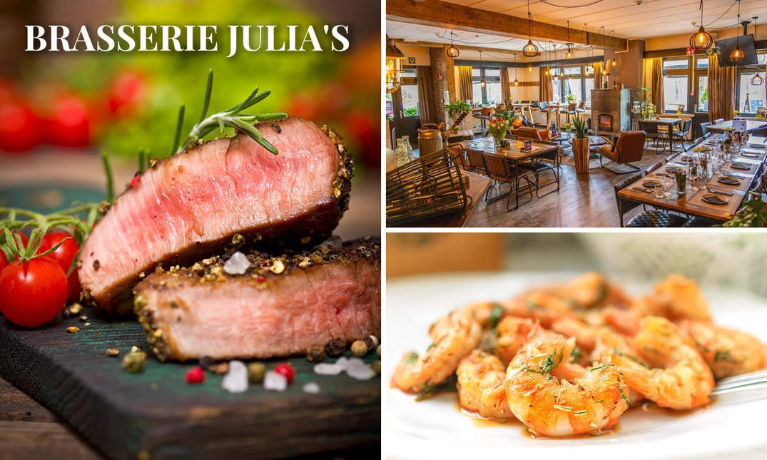 Bij Brasserie Julia’s draait alles om genieten en dat proef je tijdens een heerlijk 2- of 3-gangen keuzediner of -lunch. In deze charmante brasserie, prachtig gelegen aan de rand van EuroParcs Hoge Kempen, geniet je van verfijnde gerechten die met liefde en verse ingrediënten worden bereid. Elk gerecht wordt met zorg geserveerd in een warme, gemoedelijke sfeer waar gastvrijheid centraal staat. De bosrijke omgeving en de rust van het nationaal park maken dit de perfecte plek om even helemaal op te laden.