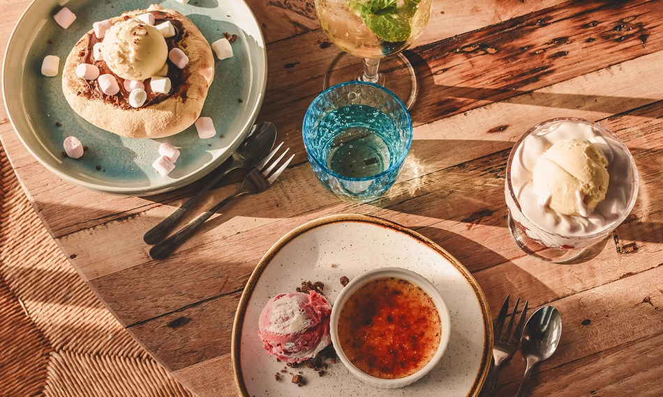 met 2 bolletjes chocolade-roomijs, shot espresso, eventueel met Lia Maria (+ €4) - Crème brûlée