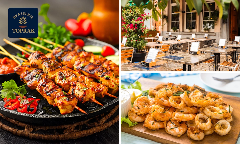 In het centrum van Leuven vind je de sfeervolle Brasserie Toprak, vol Belgische brasseriegerechten met een Turkse twist. Met deze deal ben je welkom om hier te komen genieten! Proef van een 2-gangendiner of -lunch met een voorgerecht en hoofdgerecht of hoofdgerecht en nagerecht. Bij het 3-gangendiner of -lunch hoef je niet te kiezen, je krijgt alledrie de gangen! Met een kaart vol heerlijke authentieke gerechten tot je beschikking, ga jij met zekerheid een smakelijke avond of middag tegemoet. Ga bijvoorbeeld voor de koude mezzes vooraf, kies daarna voor de kipbrochetten en sluit af met een Brusselse wafel. Afiyet olsun!