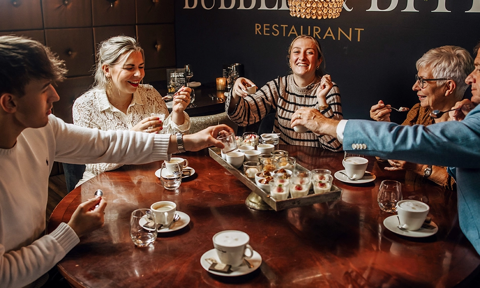 Een avondje Bubbles & Bites leent zich voor alle gelegenheden: of je nu heerlijk wilt dineren vlak voor een theatervoorstelling, een familiedag wilt afsluiten in stijl óf een zakelijk uitje wilt organiseren. De sfeervolle inrichting en persoonlijke bediening zorgen ervoor dat je je gelijk thuis zult voelen.