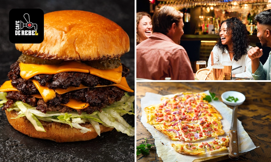 Breng je een bezoek aan de historische stad Borculo? Maak dan vooral een tussenstop bij Café De Rebel. Bij deze sfeervolle zaak geniet je van een heerlijk 3-gangendiner. Ga bij het hoofdgerecht voor een van de lekkere vlees- en visgerechten of een vegetarisch gerecht. Er is gegarandeerd voor ieder wat wils! Kom langs met je favoriete gezelschap en geniet van een fijne avond. Enjoy!