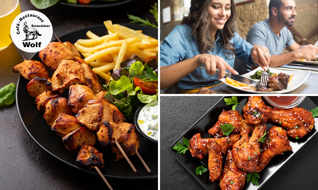 Kom gezellig een hapje eten bij Café Petit Restaurant Wolf! Jij geniet hier van een 3-gangendiner met bij elke gang keuze uit de allerlekkerste gerechten. Uiteraard is alles in eigen keuken bereid met de meest verse producten. Beleef een heerlijke avond uit eten met je geliefde, familie of vrienden!