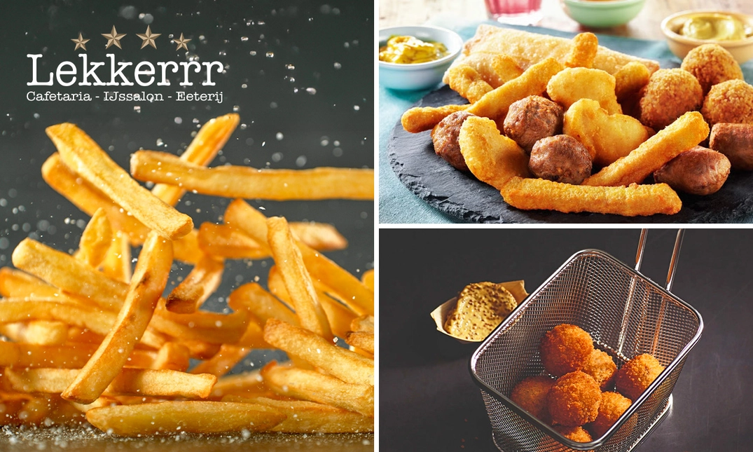 Geniet van een heerlijke high friet bij Cafetaria Lekkerrr Soest: inclusief onbeperkt verse friet, mini-snacks en saus