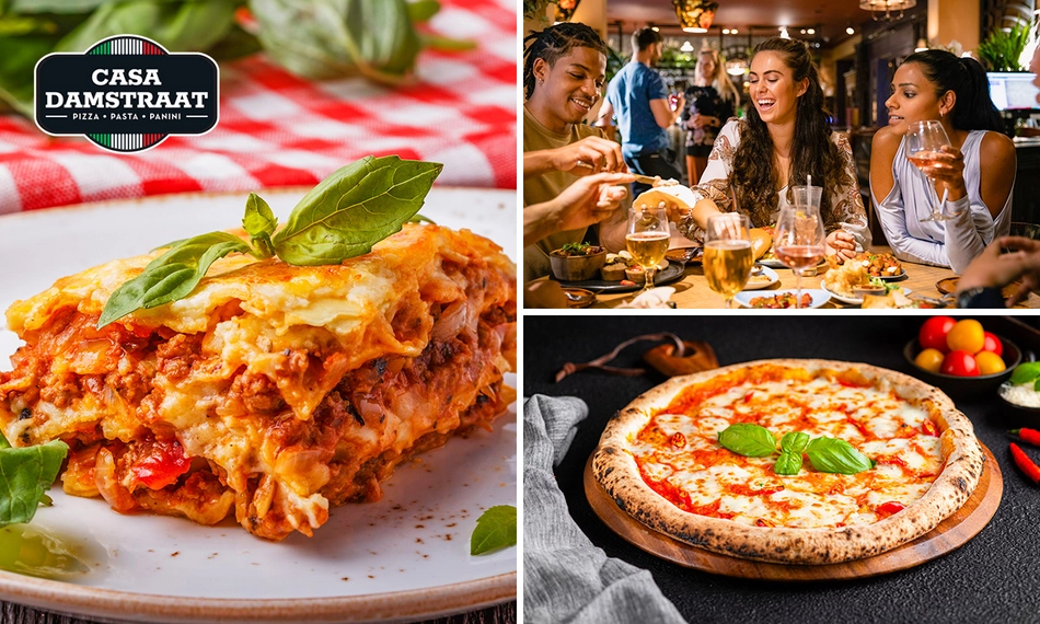 Geniet van een heerlijke pizza of pasta en een warme drank naar keuze bij Casa Damstraat: sfeervol lunchen of dineren in hartje Utrecht