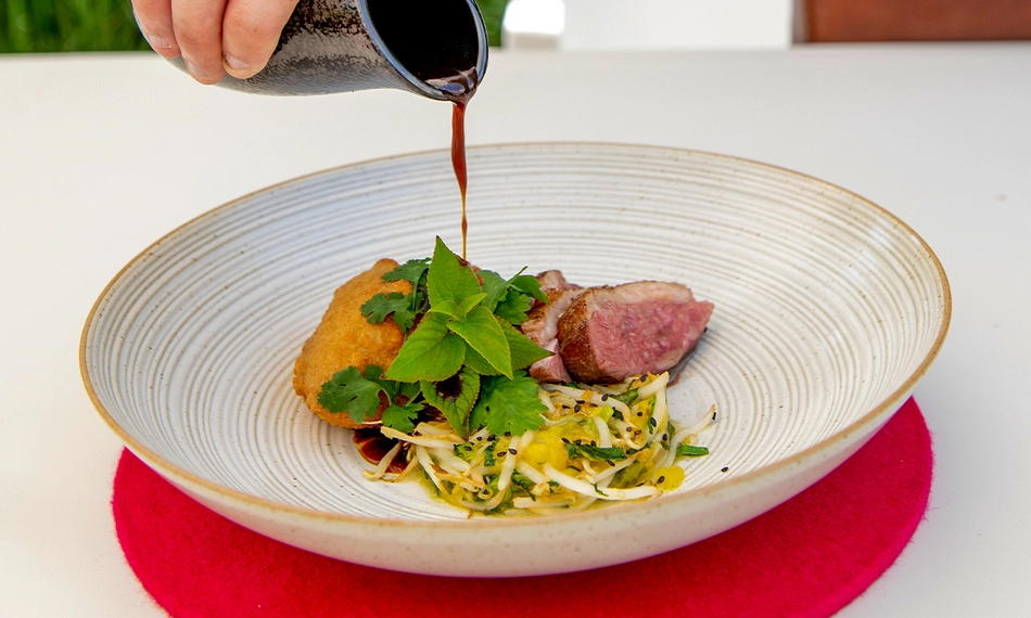 Dégustez un succulent lunch ou dîner en 3 services, tapas signature incluses à l'hôtel restaurant CCnomie : un menu raffiné dans un cadre chaleureux et élégant