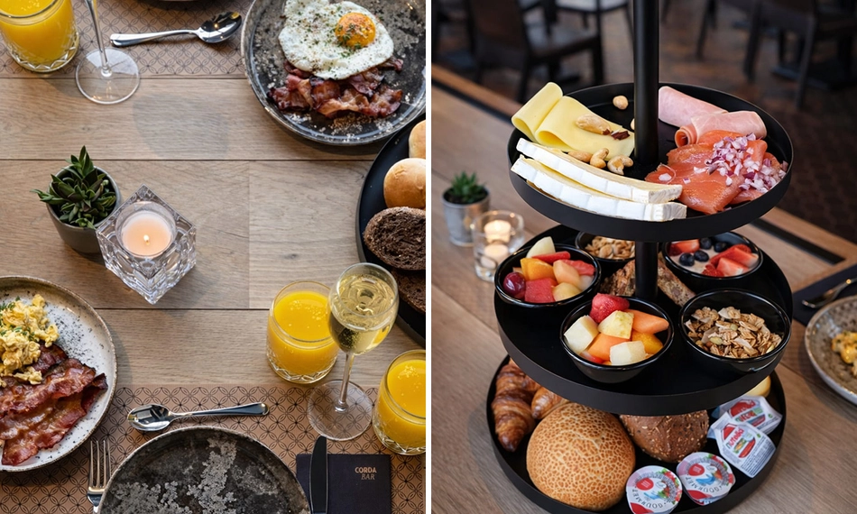 Geniet van een luxe ontbijt inclusief glas bubbels bij Corda Bar: je smult van koeken, ei, granola, fruit en meer