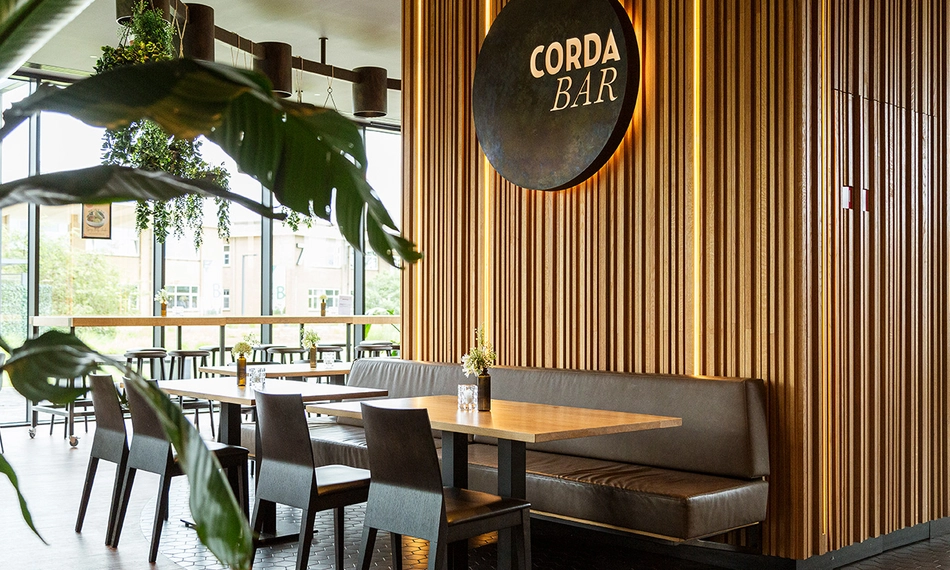 Corda Bar maakt deel uit van de Corda Campus en is het bruisende hart hiervan. Geniet hier in een ontspannen sfeer van een kleine hap, een snelle lunch of een lekker drankje. Bij mooi weer kun je plaatsnemen op het prachtige terras.
