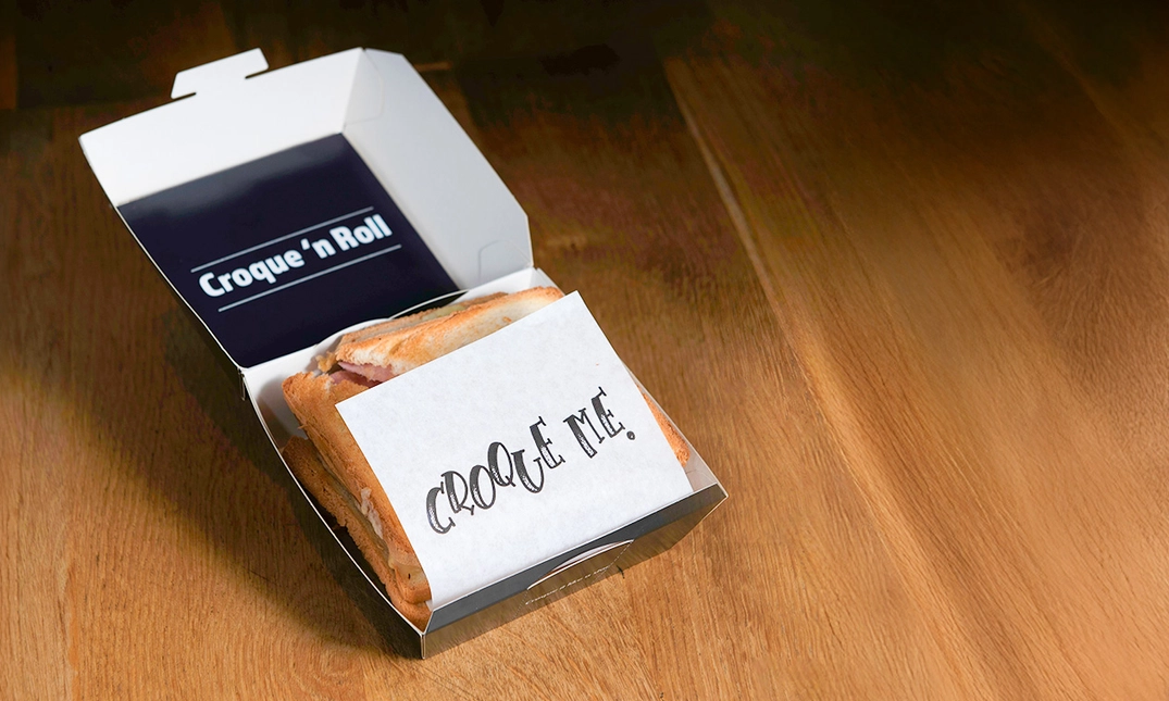 Geniet van een verrukkelijke dubbele croque naar keuze, af te halen bij Croque 'n Roll in hartje Leuven: inclusief ketchup en mayonaise