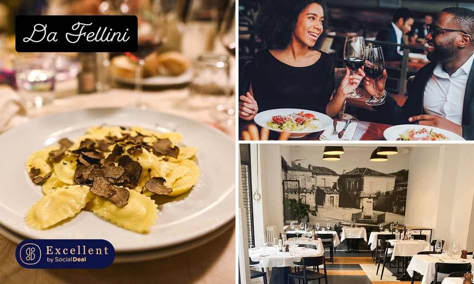 Ga op culinaire reis door Italië met een 2-gangenlunch of 3-gangendiner à la carte bij Da Fellini: proef de authentieke Italiaanse smaken in elke specialiteit