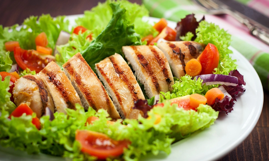 bijvoorbeeld een heerlijke carpaccio en een salade met gerookte kip
