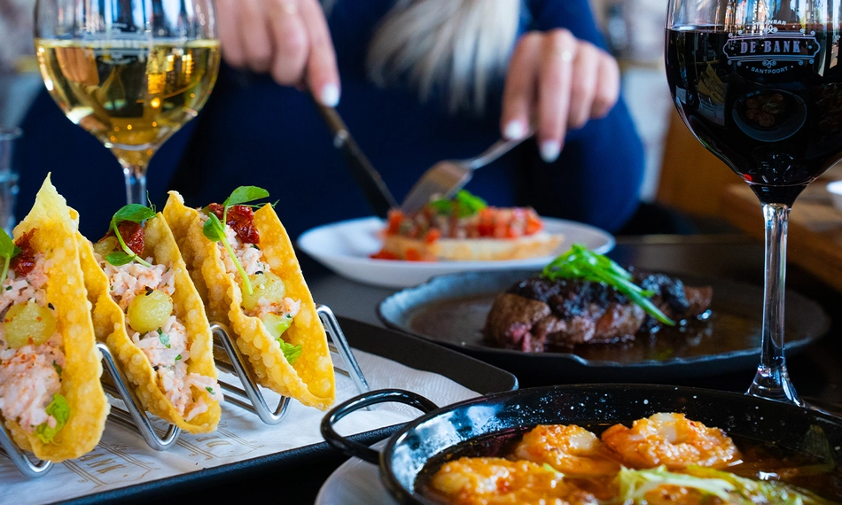 In het voormalige bankgebouw aan de Broekbergenlaan in Santpoort vind je De Bank. Bij deze sfeervolle wijnbar kun je komen genieten van een uitgebreid diner of een heerlijk glas wijn. Op de menukaart staan verschillende luxe bites die je kunt delen met je geliefde, vrienden of familie. Ieder gerecht wordt bereid met verse ingrediënten en heeft een unieke wereldse smaak die jouw smaakpapillen op hol laat slaan.