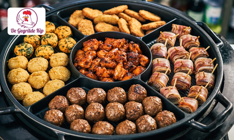 Verwen jezelf met een smakelijke partypan met 65 kiplekkere hapjes voor afhaal van De Gegrilde Kip in hartje Winterswijk: genieten van kwaliteitsvlees in het comfort van je eigen huis