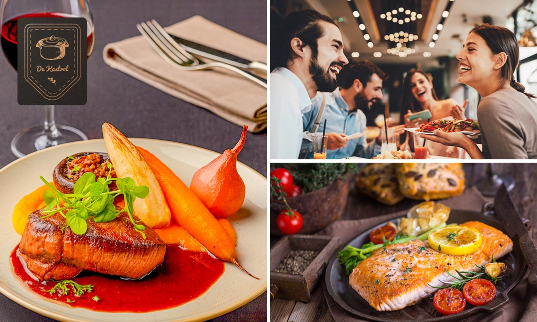 Heb je zin in een zalige middag of avond uit? Stap binnen bij De Kastrol in Lummen en laat je in de watten leggen met een 4-gangen keuzediner of -lunch! Bij deze prachtige zaak geniet je van je favoriete gerechten, met passie voor je bereid door de chefs. Wij wensen je alvast smakelijk eten!
