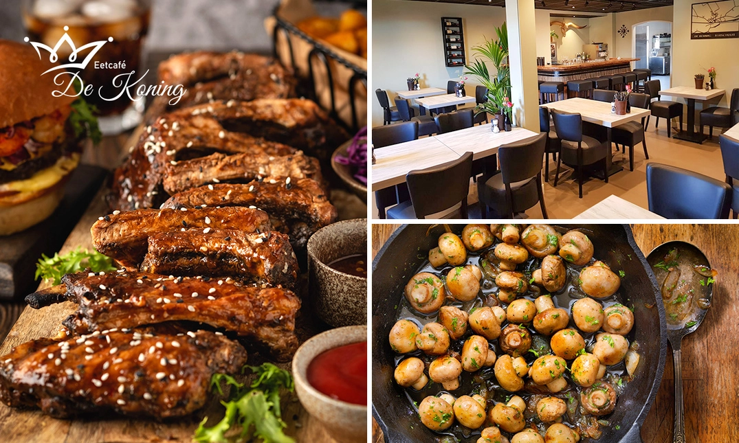 Zin in een gezellige avond uit met lekker eten? Schuif dan aan bij Eetcafé De Koning in Terschuur. Bij deze sfeervolle zaak geniet je van een heerlijk 3-gangen keuzediner. De gerechten worden hier bereid met verse producten en dat proef je! Wat dacht je bijvoorbeeld van champignons in warme knoflooksaus, schnitzel en softijs met slagroom? Eet smakelijk!