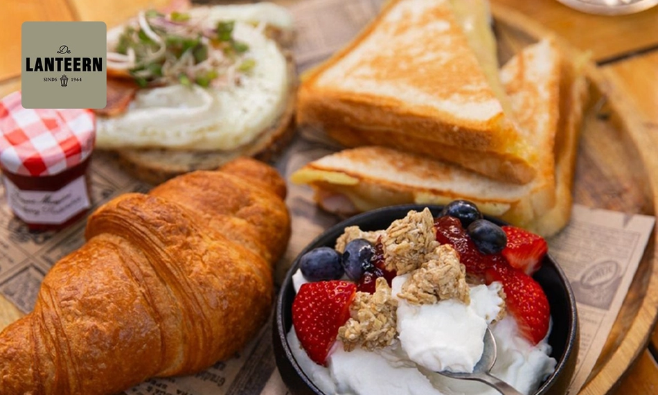 Begin je dag goed met het uitgebreide Lanteern Ontbijt inclusief koffie, jus, yoghurt, tosti, croissant en spiegelei met spek in hartje Maastricht