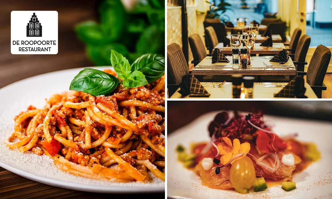 Neem nu plaats bij De Roopoorte midden in het historische centrum van Brugge. Bij dit prachtige restaurant in een eeuwenoud historisch pand geniet je van een verrukkelijk diner of lunch. Je hebt 3 gangen lang keuze uit alle gerechten van de gehele menukaart. Er is voor ieder wat wils, van Belgische klassiekers tot internationale topgerechten. Kom gezellig en zalig tafelen met je partner, familie of samen met vrienden. Laat het smaken!