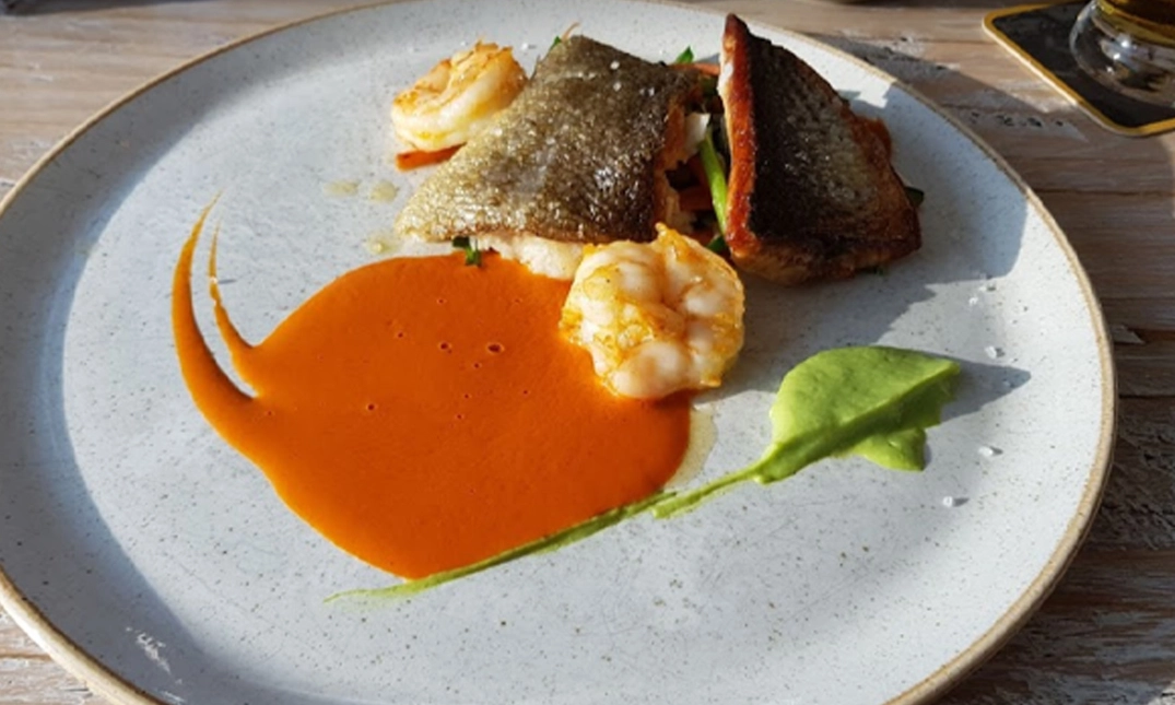 lengfilet, zalmfilet, gepelde gamba’s en blue lagoon-saus - Halve kreeft (+ €6)
