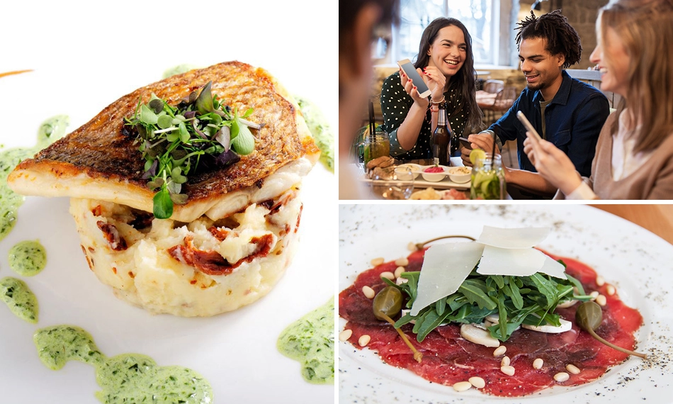 gegrilde tarbotine, pompoencrème, zoetzure appel en salade - Carpaccio van het Zeeuwse rund