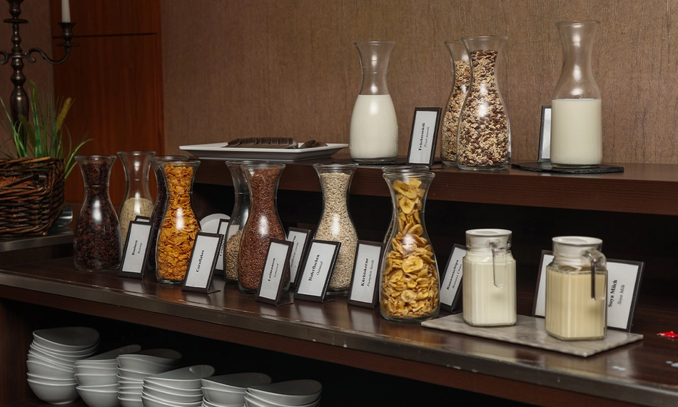 Starte gut in den Tag mit einem ausgiebigen Frühstücksbuffet im Dorint Hotel in Bonn. In zentraler Lage direkt am Rhein erwartet Dich ein reichhaltiges Buffet mit frischen regionalen Spezialitäten und köstlichen internationalen Klassikern. Von knusprigen Brötchen über herzhafte Aufschnitte bis hin zu frischem Obst und aromatischem Kaffee findest Du alles, was das Herz begehrt, um entspannt und genussvoll in den Tag zu starten. Guten Appetit!