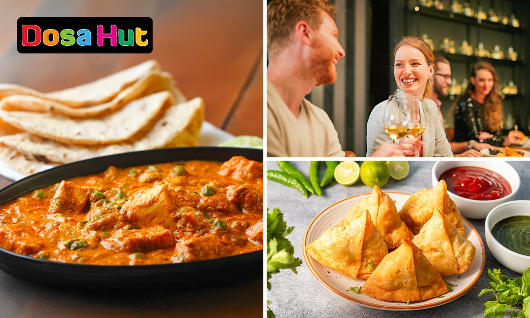 Lust auf eine kulinarische Reise nach Indien? Im DosaHut in Düsseldorf wartet ein 3-Gänge-Menü voller intensiver Aromen, würziger Düfte und authentischer Street-Food-Vibes auf Dich. Starte mit einer leichten, Vorspeise, bevor Du Klassiker wie Paneer Chicken Masala oder Garlic Masala Dosa zum Hauptgericht genießt. Zum Abschluss gibt es eine süße Verführung, die das Geschmackserlebnis perfekt abrundet. Ein Fest für alle, die die indische Küche lieben oder sie kennenlernen wollen.