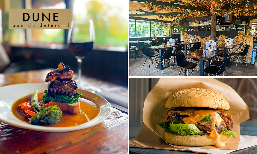 Kom aanschuiven bij DUNE aan de duinrand. Bij dit gezellige en gemoedelijke restaurant geniet je van een 3-gangendiner met vrije keuze van de kaart. Op de kaart staat voor ieder wat wils met als aanrader de ambachtelijke pannenkoeken. Ook voor de kleine gasten is er genoeg te beleven in de speelhoek. Dankzij de ligging direct naast de ingang van het prachtige duingebied aan de Zandvoortselaan, maakt dit het de perfecte setting om na te genieten van een bezoek aan de duinen. Beleef een gezellige avond uit met het hele gezin!