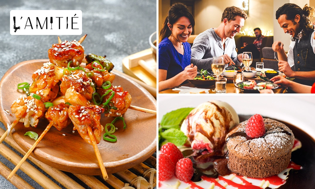 Geniet van een spetterende tapaservaring tijdens een 3-gangen shared tapaslunch of -diner bij Eetcafé l’Amitié: verwen jezelf en stel zelf je tapas- en fingerfood lunch of diner samen
