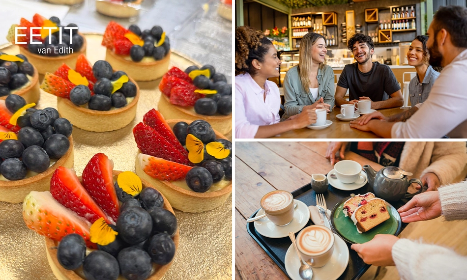 Geniet van koffie, thee, een cappuccino of latte macchiato bij EETIT op Vrieze’s Erfgoed: inclusief een plankje vol eigengebakken zoete lekkernijen