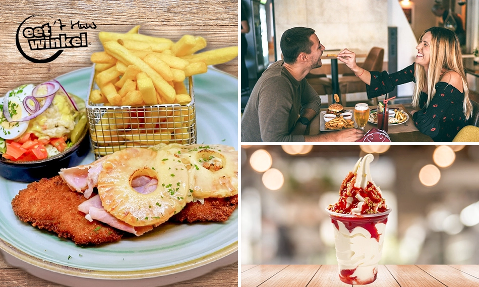 Ben jij een echte schnitzelliefhebber of loopt het water je in de mond van malse kipsaté? Neem dan eens een bezoekje bij Eetwinkel 't Huus! Hier geniet je namelijk van een heerlijk 2-gangen schnitzel- of kipsatédiner. Bij beide gerechten krijg je ook nog knapperige friet en een frisse salade. Als kers op de taart sluit je het diner af met een verrukkelijk nagerecht. Wij wensen je alvast smakelijk eten!