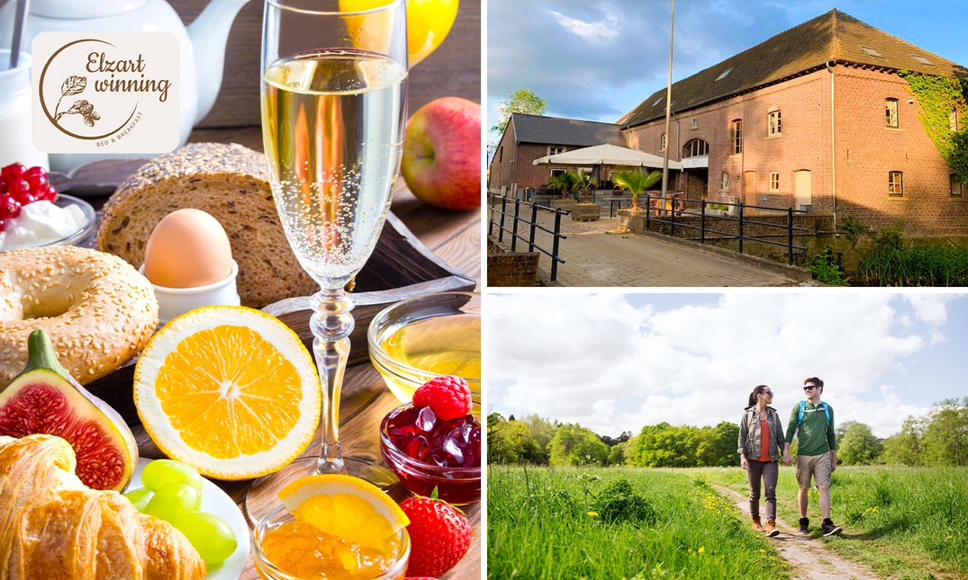 Hoe kun je je dag nou beter beginnen dan met een zalig ontbijt? Daar weten ze bij Elzartwinning alles van, en dus nodigen ze je graag uit voor een luxueus ontbijt inclusief glas cava. Je krijgt onder andere een croissant, een chocoladebroodje, granola en vers fruit, koffie en thee en nog veel meer. Elzartwinning ligt in een prachtige omgeving die bekendstaat om mooie wandel- en fietsroutes in het natuurreservaat van het Herkenrodebos. Ideaal om te combineren met een actieve dag in de buitenlucht. Wij wensen je alvast smakelijk eten!