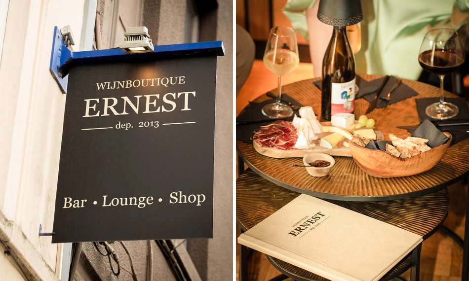 Ernest Wijnboutique is een charmante wijnbar in het vernieuwde, historische hart van Kortrijk. Hier geniet je van kwaliteitswijnen in een ontspannen en warme setting. De wijnen worden rechtstreeks geïmporteerd van kleine wijnboeren en met zorg geselecteerd, zodat je altijd iets vindt dat zowel vertrouwd als verrassend is. Naast het drinken van een goed glas wijn kun je er ook heerlijk dineren of genieten van verfijnde tapas die perfect aansluiten bij de sfeer van de zaak. Liever een biertje of een frisdrank? Dat kan natuurlijk ook.